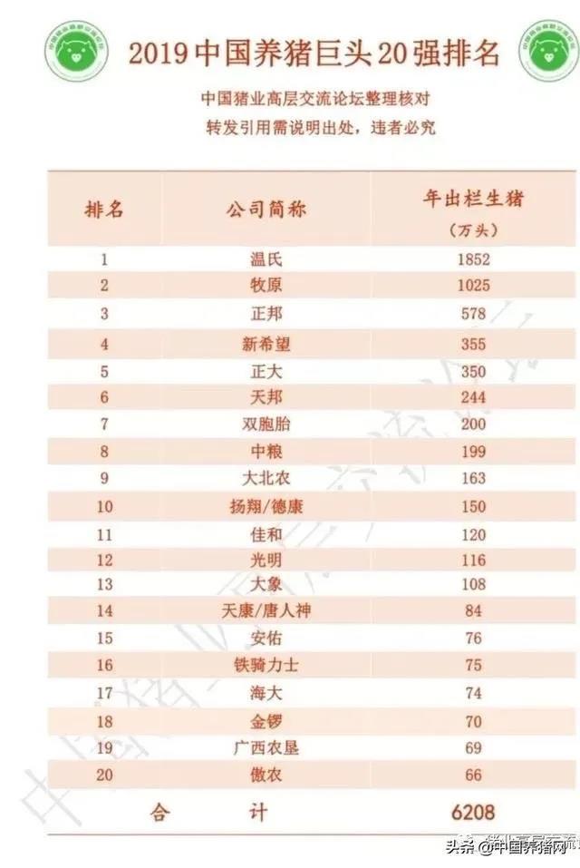 近日,中國豬業(yè)高層交流論壇公布2019年中國養(yǎng)豬巨頭20強排名,山西大象農牧體系生豬出欄量從2018年全國第十九位強勢上升至2019年第十三位。