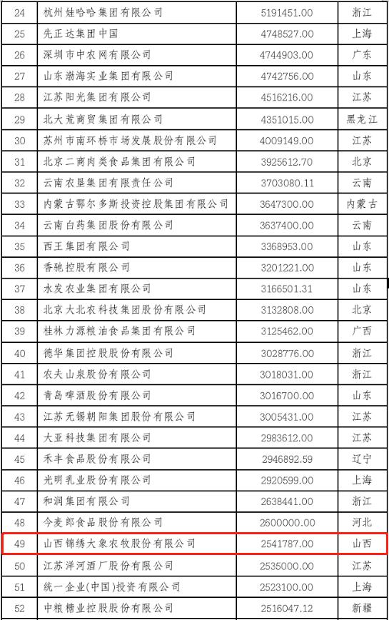 12月15日,在農(nóng)民日?qǐng)?bào)社公布的《2022中國(guó)農(nóng)業(yè)企業(yè)500強(qiáng)》中,山西錦繡大象農(nóng)牧股份有限公司以營(yíng)收254億元排名2022中國(guó)農(nóng)業(yè)企業(yè)500強(qiáng)第49位,并在家禽板塊中,與溫氏食品、禾豐食品、諸城外貿(mào)、江蘇益客一道位列行業(yè)前五。